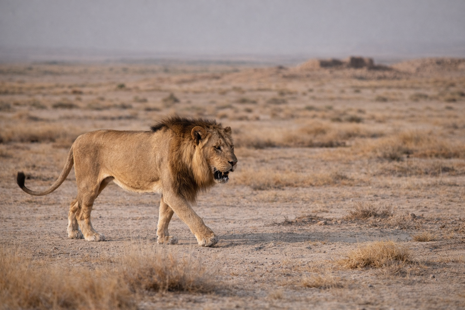 Lion in an arid landscape