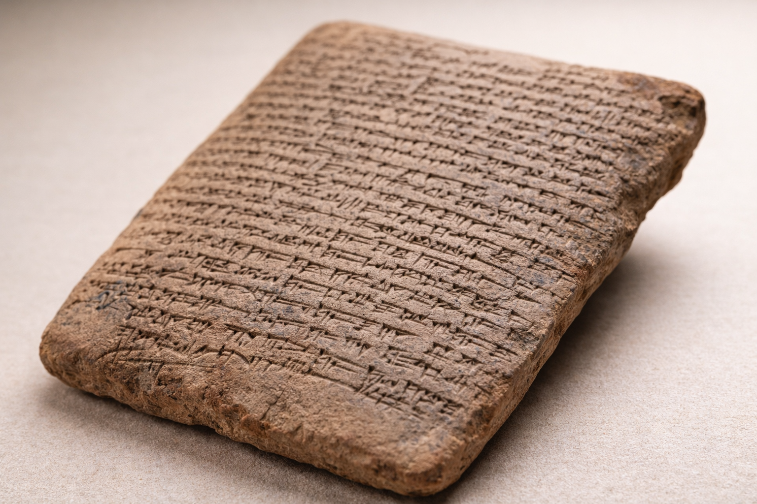Ancient Mesopotamian cuneiform tablet close-up